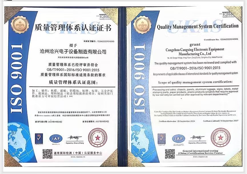 2010年公司相继通过了ISO9002品质保证体系认证,UL安全认证及ISO14001环境体系认证。为广大客户提供安全可靠的产品做了保证。